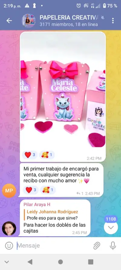 Si aseguras tu cupo ahora tendrá acceso completamente gratis a la comunidad privada de Telegram más grande de estudiantes de papelería creativa donde podrás mostrar tus avances, pedir sugerencias y recomendaciones para que la comunidad y yo te ayudemos.